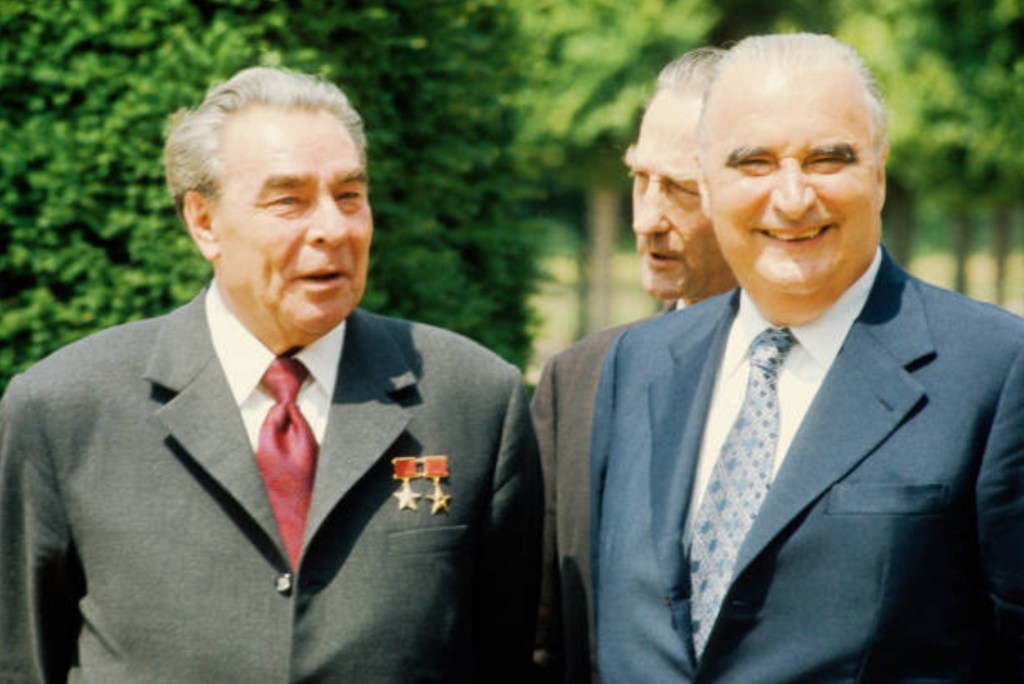 En mars 1974, après l’avoir accueilli à Rambouillet en juin 1973 (photo ci-dessus), il va en Russie pour rencontrer Brejnev, dirigeant de l’URSS de 1964 à 1982, travaillant à adoucir les relations entre la France et les soviétiques.