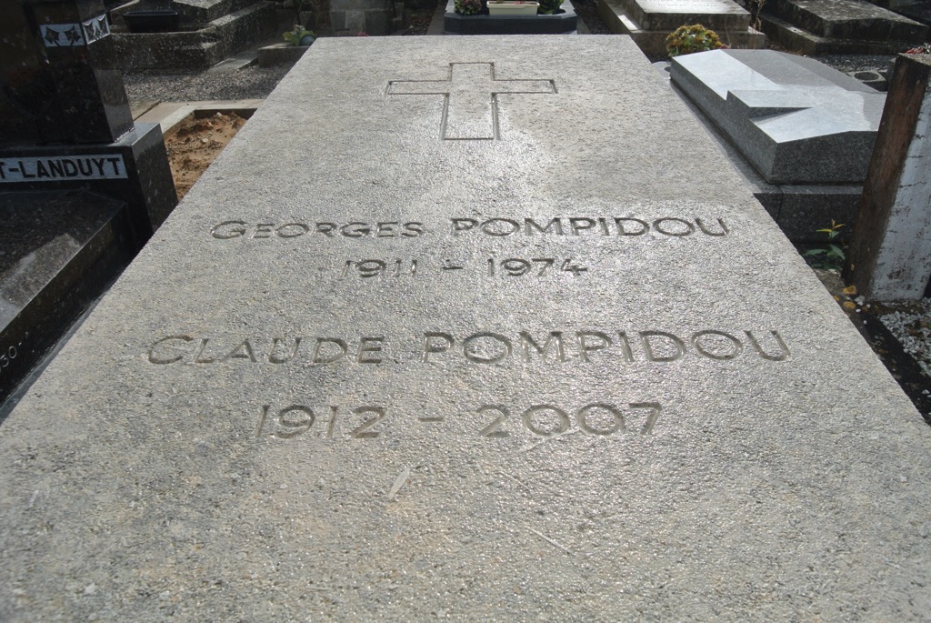 C’est un grand coup pour la France qui perd un des plus glorieux de ses fils. Le Président Pompidou ne désire ni fleurs ni couronnes. Il réclame des obsèques sans faste: une messe à l’Eglise Saint-Louis en l’Isle, sa paroisse, mais chantée en grégorien, et une dalle en pierre de taille dans le cimetière d’Orvilliers où figureront seulement un nom et deux dates: Georges Pompidou 1911-1974.
