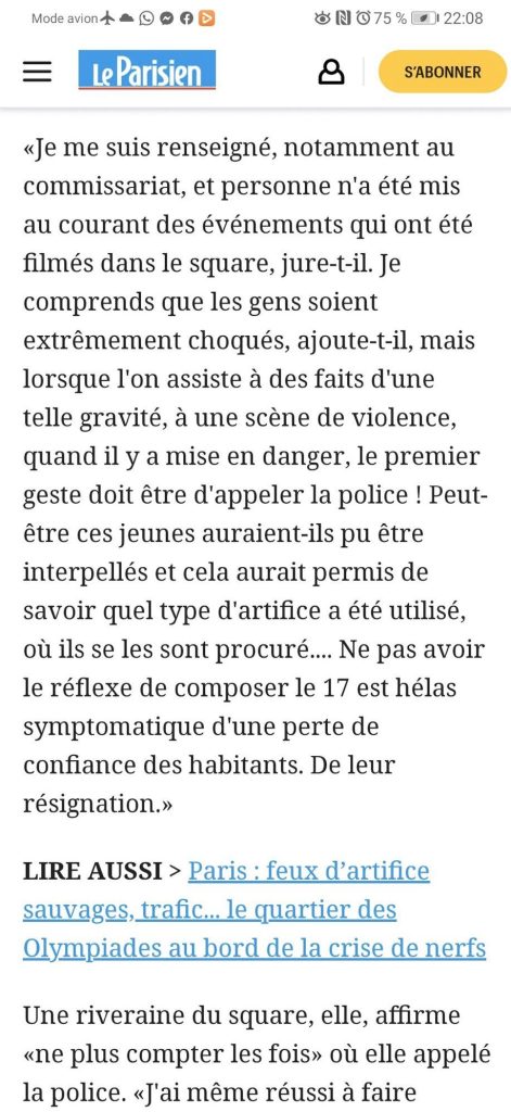 Le maire de l’arrondissement François Dagnaud, parlant «une affaire dont il n’y a aucune trace» prétend qu’aucun habitant n’ait appelé la police sur le moment, ce que l’élu met sur le compte d’un « manque de confiance« , et de « résignation » des habitants des immeubles alentours. Ci-dessous un extrait de sa déclaration au Parisien: