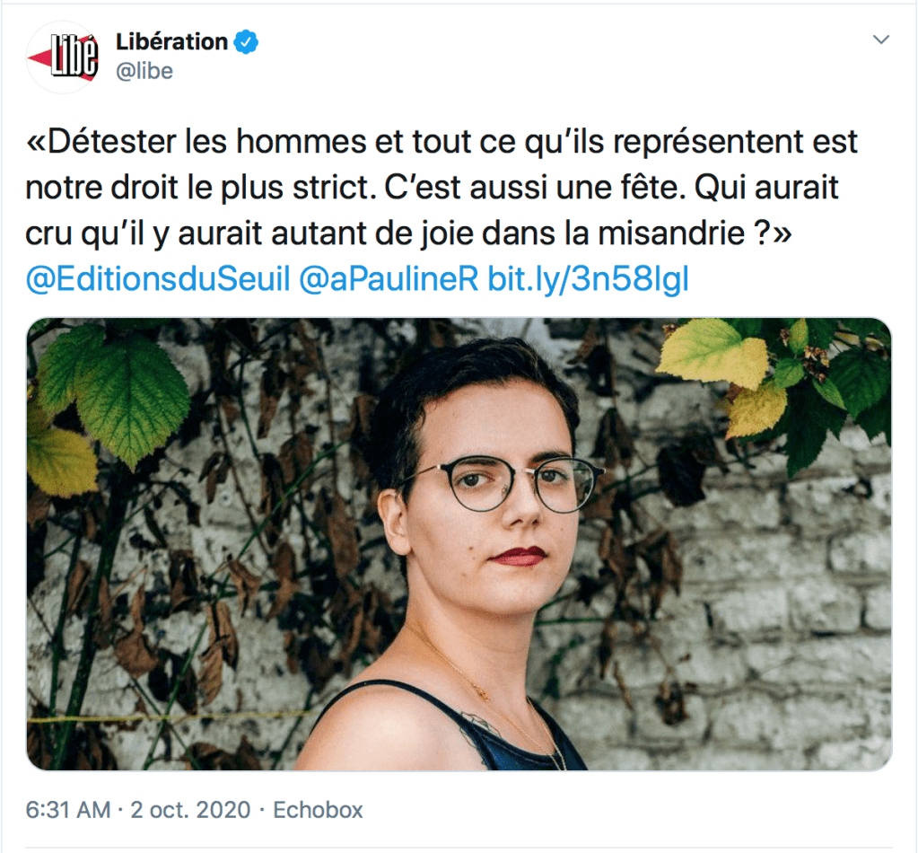 Les féministes radicales font tir groupé en ce moment. On vous avait déjà récapitulé le cas Alice Coffin, élue dans la majorité d’Anne Hidalgo, et cofondatrice, entre autres, de l’Association des journalistes LGBT, qui considère tous les hommes comme des « assaillants ».
