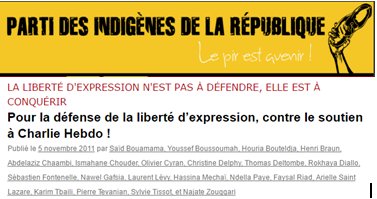Il fait référence au fait que cette pseudo « anti-raciste » ait signée le 5 novembre 2011 une tribune pour minimiser l’incendie des locaux de Charlie Hebdo et se dresser « contre Charlie Hebdo », qui faisait déjà à l’époque, l’objet de menaces très précises de la part des islamistes de Daech.