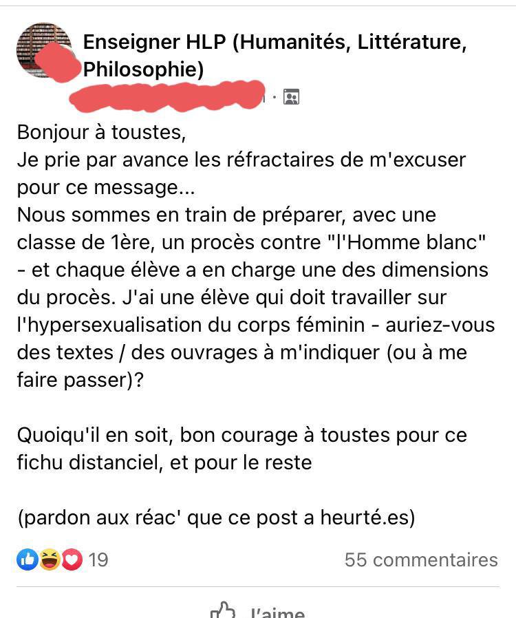 Une réponse à « Dans un lycée français, un professeur organise un « procès contre l’homme blanc » »