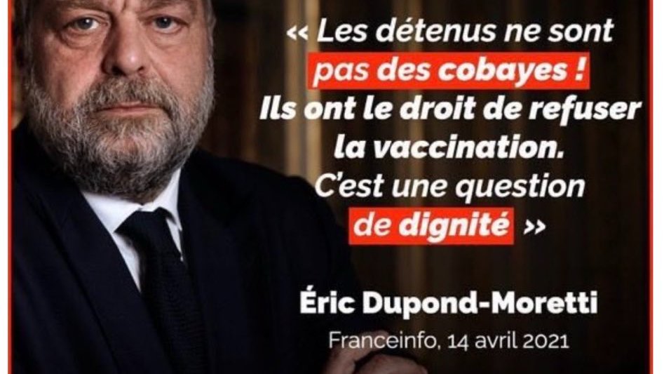 3. […] de Éric Dupond-Moretti qui considéraient que les prisonniers ne pouvaient pas être des « cobayes » du vaccin, ça commence à faire […]