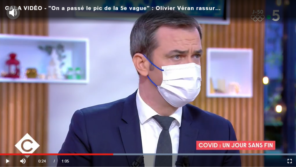 Le 2 janvier, le Professeur Fontanet indique dans le JDD que le pic du nombre de cas de Covid-19 « devrait culminer mi-janvier » et Olivier Véran de s’avancer probablement trop imprudemment « cette cinquième vague sera peut-être la dernière »!