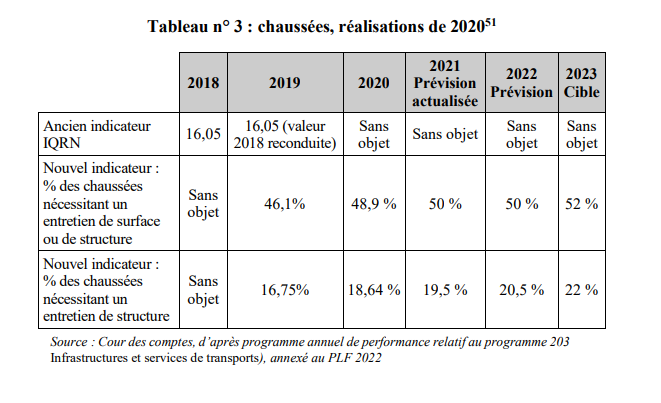 On voit dans ce document de la Cour des Comptes, une nette augmentation de la dégradation des chaussées :