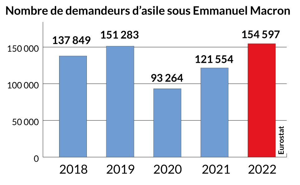 Le nombre de titres de séjour explose lui aussi : 320.000 titres de séjour ont été délivrés en 2022, en hausse de + 17% par rapport à 2021.