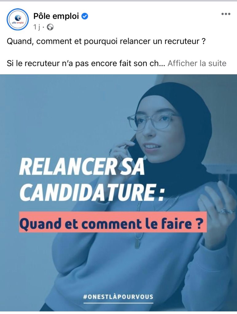 Sous la pression des amoureux de la France et de la liberté des femmes, le site Pôle emploi a retiré un visuel d’une de ses campagnes numériques où l’on pouvait voir une femme voilé. À l’heure où les iraniennes risquent leur vie pour retirer leur voile islamique, cette provocation était vraiment devenue insupportable.