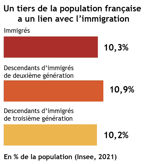 «En 2021, 12,9 % des personnes âgées de 15 à 74 ans vivant en France ont au moins un parent né à l’étranger, contre 7,1 % en moyenne pour les pays de l’Union Européenne à 27».
